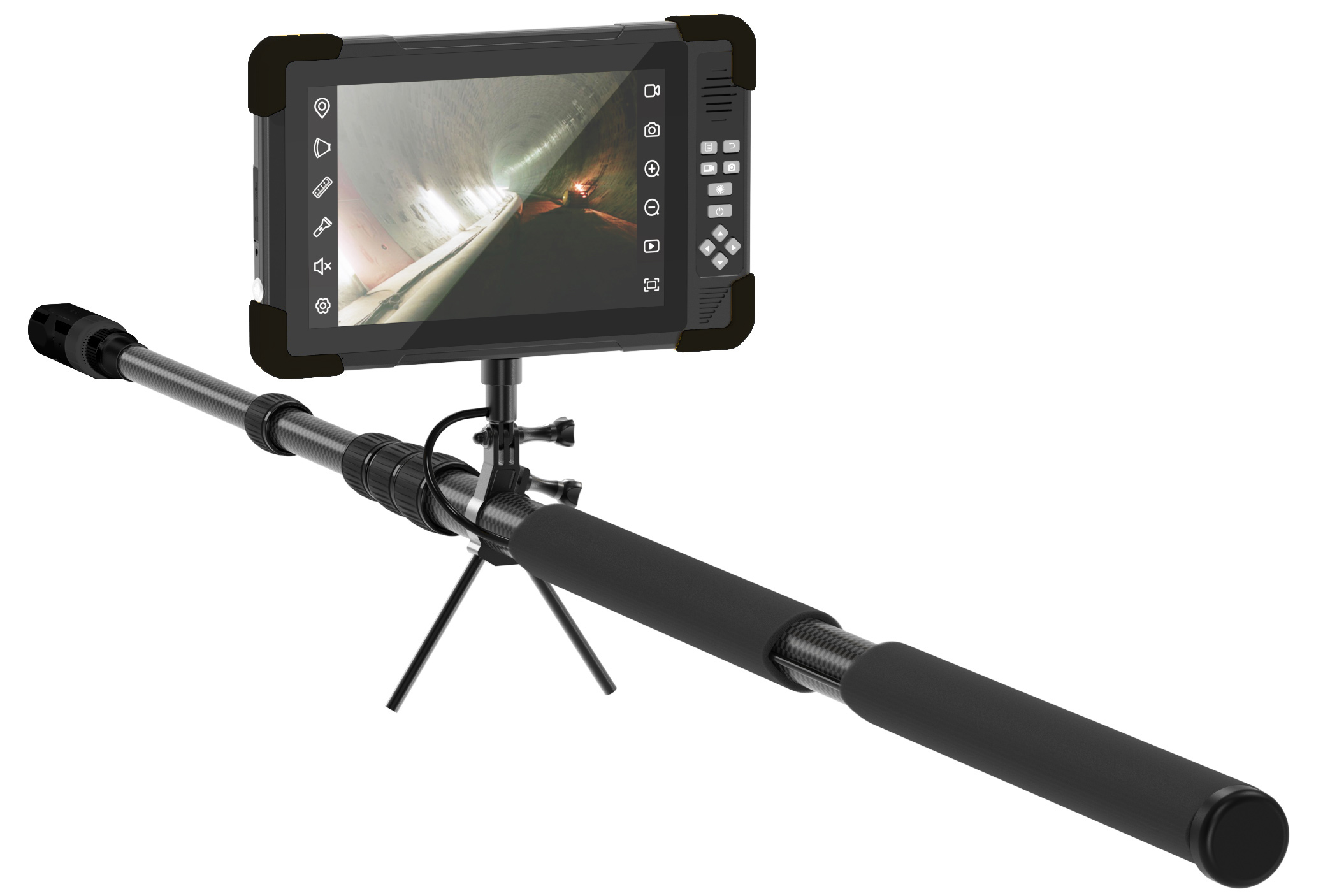 Used for the inspection of systems, machines and construction as well as for safety tasks. The polescope camera is used to diagnose and monitor hard-to-reach areas on machines and systems. This means that the polescope camera can also detect potential dangers inside machines. Our infrared camera is used for example in military operations to make enemies visible in night operations.